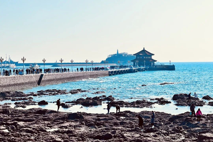 位于青岛中山路南端的栈桥有着一百多年的历史,桥身从海岸探入如弯月般的青岛湾深处。