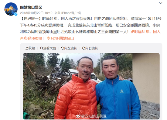 而这距离上一次我国成功登顶贡嘎,已经过去了61年。
