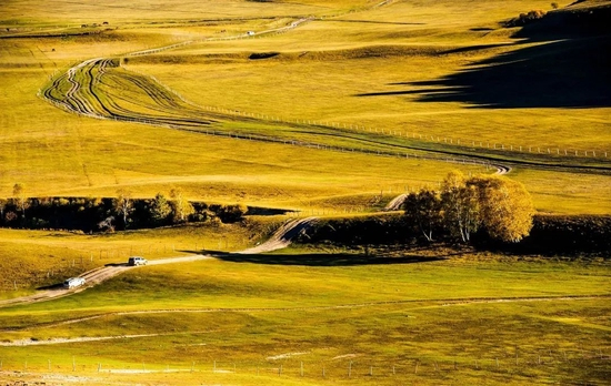 乘坐越野车,深入乌兰布统,在绝美的欧式草原里穿梭,可以同时享受肾上腺素飙升的刺激和宛若天堂的秋日美景。