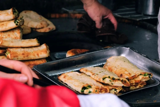 小小的烤饼里包上满满的猪肉、葱花……在炉壁上烤到吱吱直流油,香气从鼻子入侵大脑,让口水不停分泌。