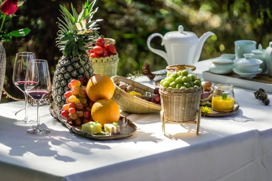 在阳光慵懒的午后,在泳池边、在湖畔、在光影斑驳的森林里……喝个下午茶,对着绝美的空濛山色放空自己,也不失为一众极致的享受。