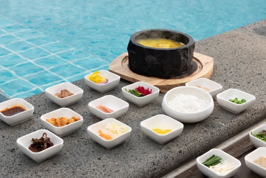 还有部分客房自带花园和泡池,庭院里便有火山石切成的特色汤池,可随时随地泡汤,等天气转凉,来此泡汤度假再合适不过。