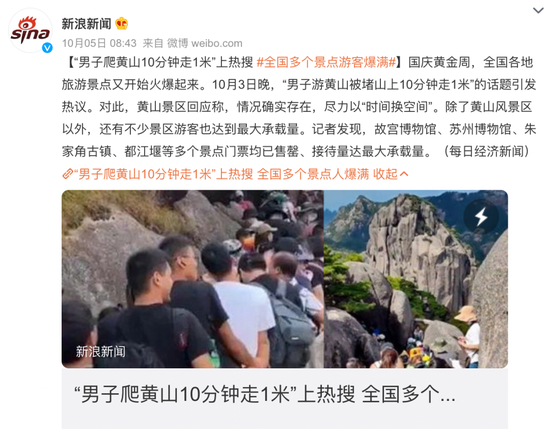 虽然知道老牌景区每到节假日人多是可预料的,但是挤到上热搜还是有些夸张了。