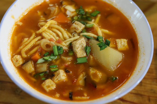 还可以再加入韭黄、香菜,以及各种辣酱等。热气腾腾汤汁浓郁,非常适合秋冬。