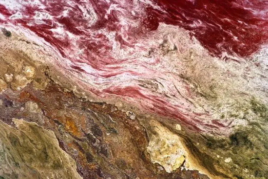 来看看这片少女心爆棚的粉色海洋,不过是被养猪场排泄物污染的湖泊。