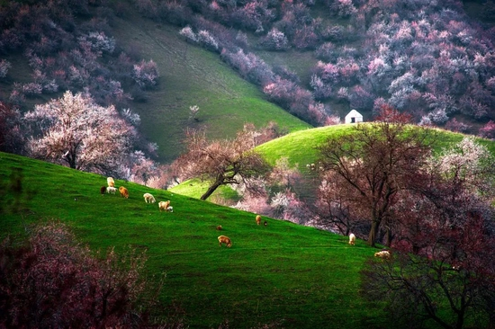 吐尔根的杏花一开,伊犁便迎来了第一抹春色。当粉色的花蕾开满山坡,这里就变成了浪漫的“粉色王国”;身处其中,可以感受到杏花雨带来的柔情,花林漫步,不时吹来一阵阵沁人心脾的花香。