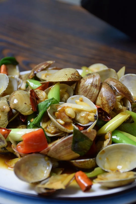 我们还点了一份麻辣烫和炒蚬子,也非常好吃。麻辣烫是清淡口的,但入口的一丝丝麻味又能让唇齿生津,配烧烤很不错。