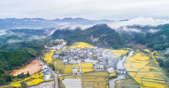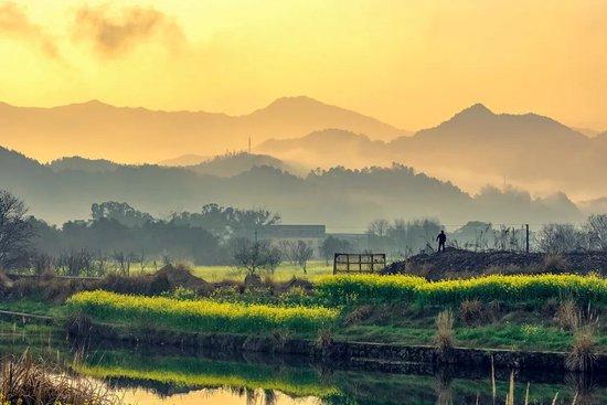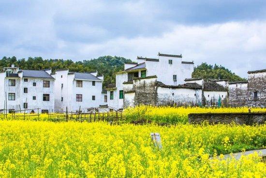 走入村子,黑白分明的徽派古宅,连绵悠远的茶岭,灿烂盛开的油菜花田……宛如一幅水墨画。