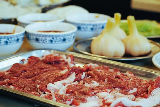 在这里你可以体验到老北京涮羊肉的待遇,当天空运到店的内蒙古绵羊,上脑、里脊、腱子、磨裆、黄瓜条、大三叉、一头沉……想吃哪里点哪里。