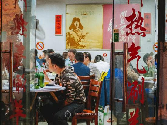 这一片有声名在外的百年老字号洪长兴,也有开了20多年的小馆子月圆火锅。向南不出两条街,从北京运来的老门框外总是排着长队。8号桥附近,萬曉隆赶在立冬前重出江湖。报业大厦和电视台的人,还是习惯了去双叶居取暖。而南门涮肉则以一种孤傲的姿态,独自伫立在黄浦江对岸。