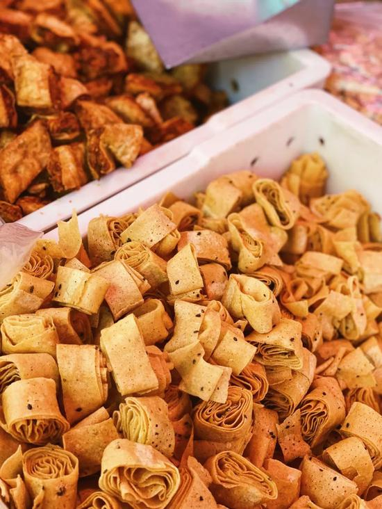 层叠薄脆的咯吱盒,如同一嘴咬进一摞薯片。豆面特有的粗粝口感和杂粮香,让每口都回味无穷。五块钱就能买小半兜,一路溜达着走到前门也吃不完。