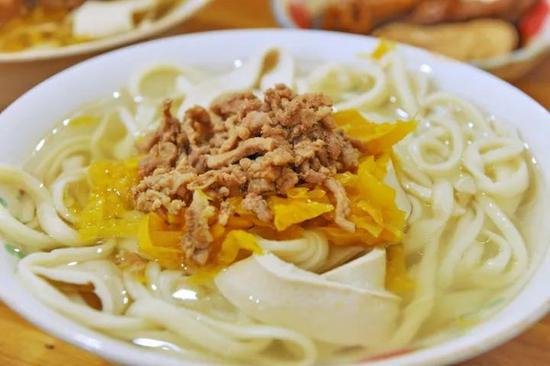 佛堂千张面在义乌美食中名气不小,不少人专程来佛堂就为了吃这口面。