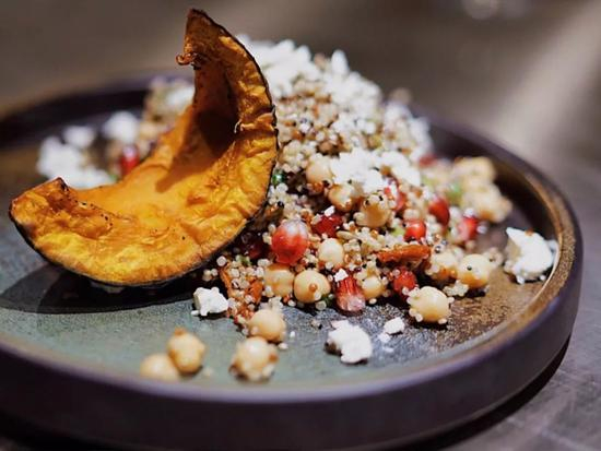 当季的板栗加上酥软的南瓜,藜麦和鹰嘴豆的清爽口感搭配清甜的石榴,可以说这道菜的卖相非常秋天了。里面还贴心地加入了混合坚果,非常健康。