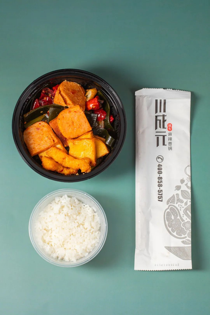 论麻辣香锅里最喜欢的食物, 要数午餐肉了。所以今天中午,特地点了一份‘川成元麻辣香锅’的梅林午餐肉单人套餐。