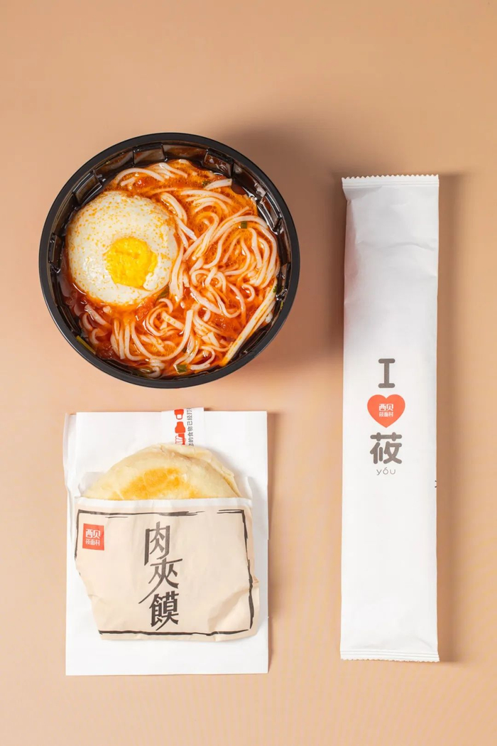 在‘西贝莜面村’的页面找到一人食套餐,果断给自己来一份肉夹馍酸汤挂面,一份热乎乎的挂面,配着一个鸡蛋,酸爽又过瘾。再来一个尺寸适中、味道超正的肉夹馍,是对‘西贝莜面村’的挂念了。