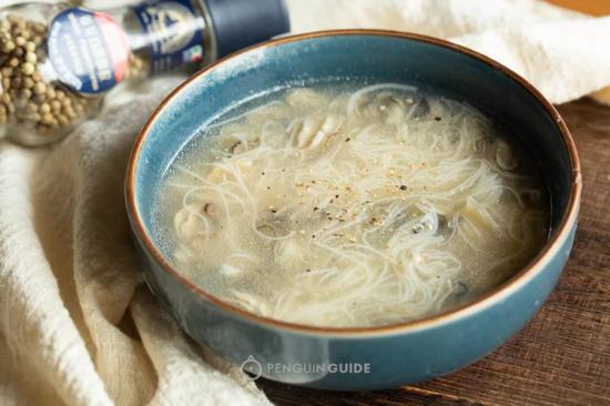 Tips:冷冻状态下直接入沸水煮5分钟,除了自带的胡椒料包,汤底里还可以根据口味加入酱油和醋。