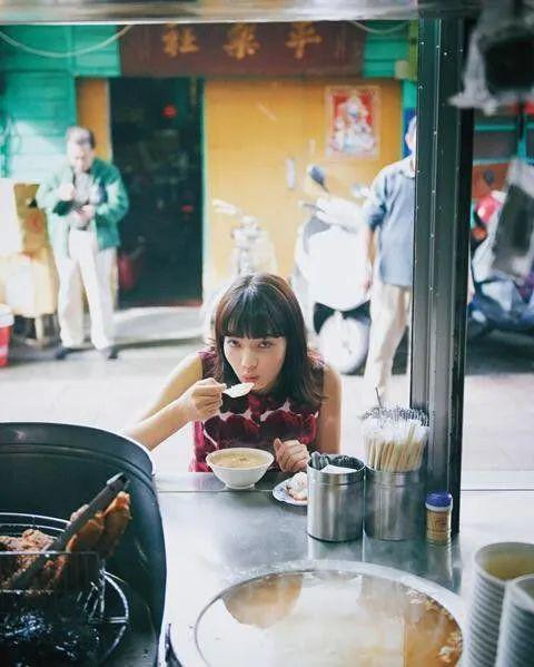 🍧街边美食:一定要选择好看的店铺为背景,手里拿着美食,表情生动可爱就好啦~▼
