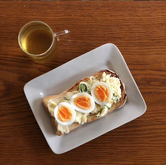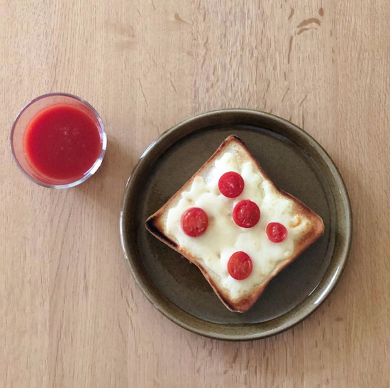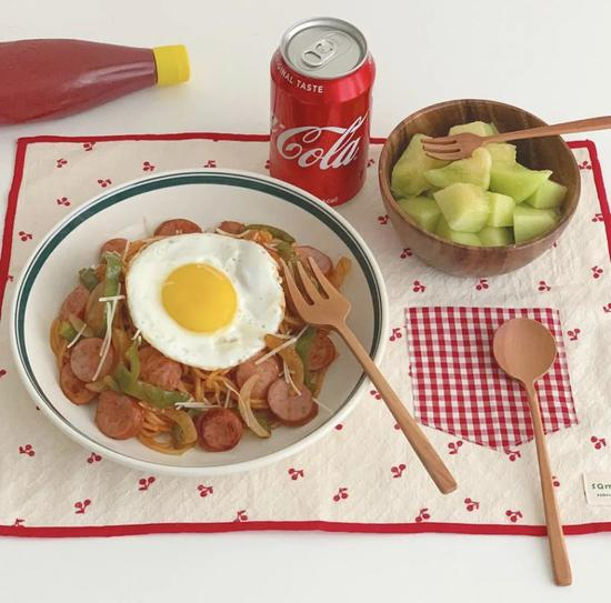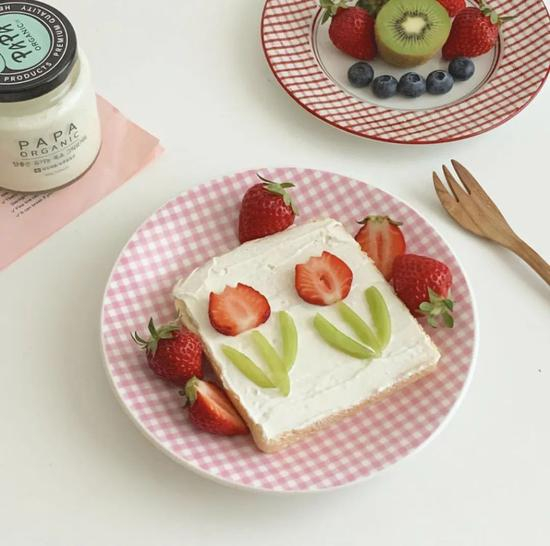 这类型的照片一定要记得选好看简洁的桌布哦~光线要保证明亮通透,所以食物摆在窗边的位置恰到好处。而且细心的朋友们可能发现了,她照片背景里的餐具会根据食物的色彩而有所调整。
