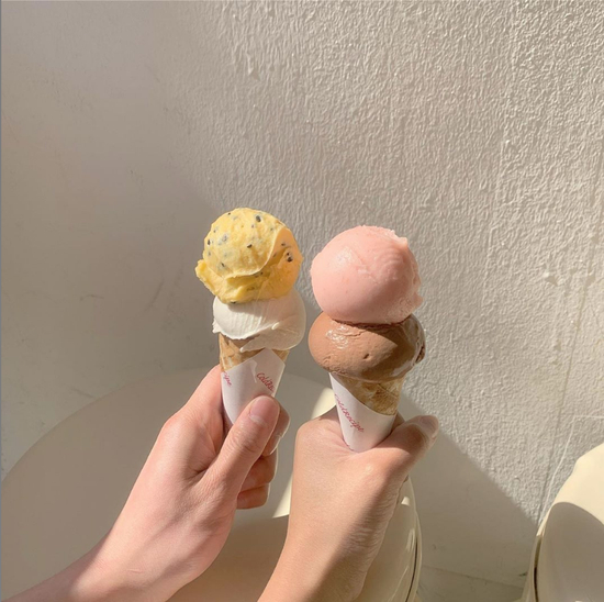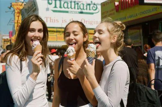 👭和闺蜜吃美食:一定要有互动!不是和闺蜜互动就是和食物互动。拍的时候可以互喂、用食物/饮料/水果挡脸、一起做同样的动作舔冰淇淋等。▼