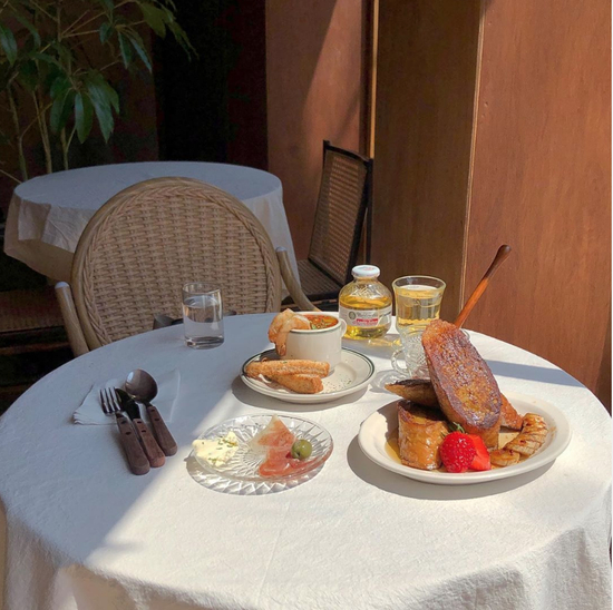 去餐厅吃饭如果依旧怼着食物一顿狂拍的话,未免太俗套了。如果餐厅人少,装潢又很🉑️的话,可以拉远一点,把餐厅的氛围拍出来。也可以拍一些餐厅的小角落,如果坐在窗边有阳光就更完美啦~