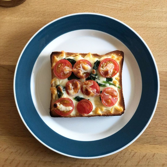 由上往下90°的拍摄手法是比较常见的一人食拍法,一般不只局限于食物本身,桌子、餐具、桌布也可以一起拍进去。桌面一定要保持简单干净,光线明亮。