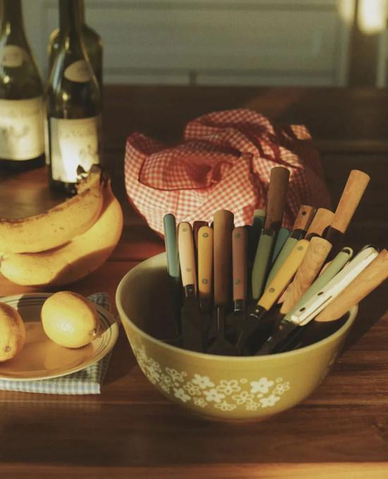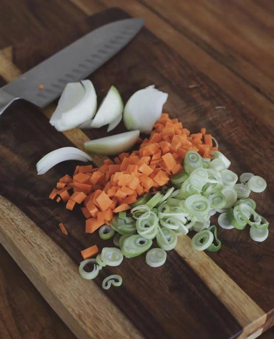 利用45°的拍摄视角,也就是人坐在餐桌前看着食物的角度更有第一视角代入感。可以把切菜、煮菜的过程都拍下来。也可以拍些餐具类的照片,更有生活气息。