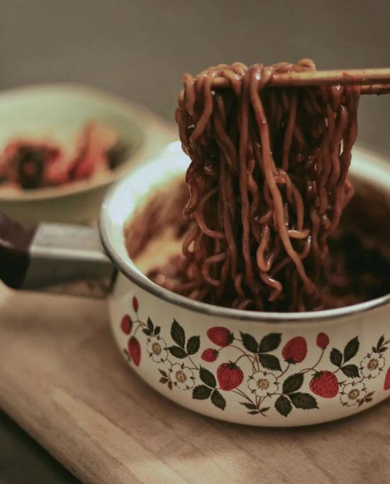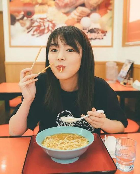 🍜吃面条:最常见的食物合照之一,就是面条了,想要拍得自然,要么假装正在吃,要么假装正要吃。总之手里的餐具不能闲着。▼