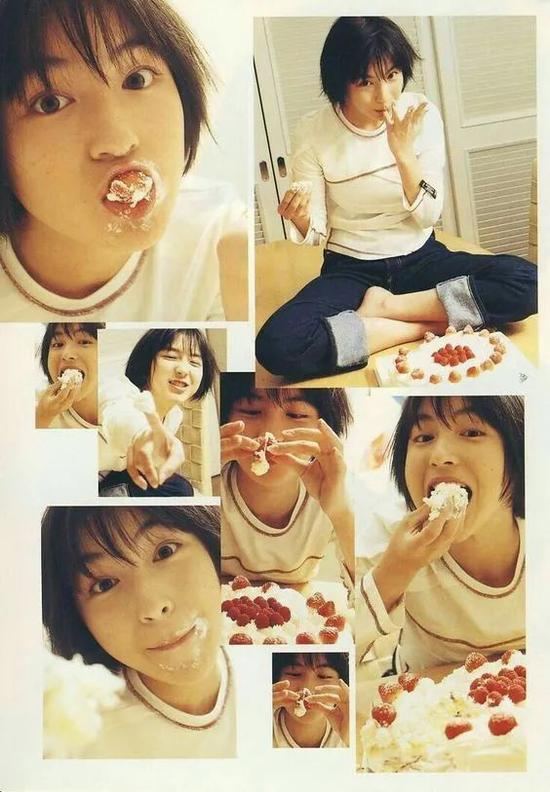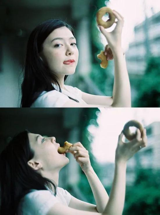 🍩吃蛋糕甜点拍照的一贯套路:假装不顾形象大口把蛋糕塞进嘴里,最好故意涂在嘴边或鼻尖,营造一种“不顾形象”的俏皮感~▼