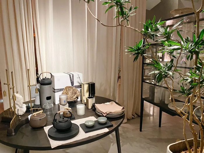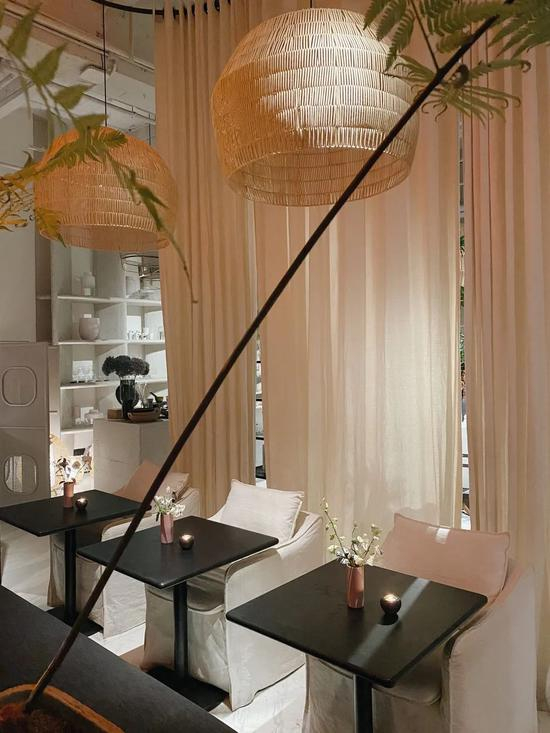 配色缤纷的鲜花,风格独到的餐具、小物、香氛,乃至家具,吊灯等等,选品还是蛮丰富的,用餐之前不妨先逛逛看~而陈列与用餐区域交融在一起,感觉十分放松。