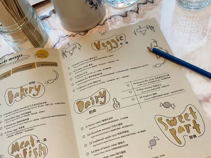 这里的点单方式很特别。餐点的分量都是小小的,你可以选择3、5或7道的set,然后从整个菜单中任意挑选。Bakery,主菜,沙拉,甜点等等都有。