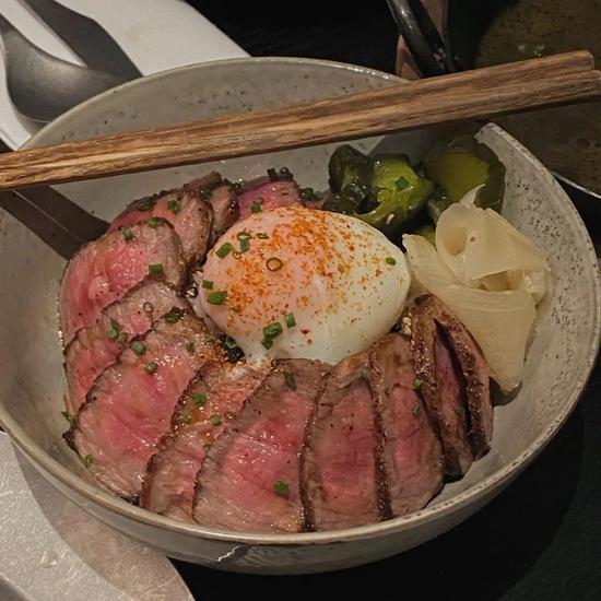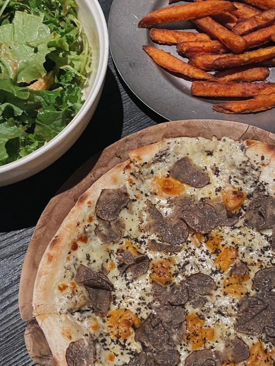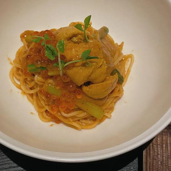 和风、中式、西餐。。。混搭的意味。最有意思的是松露pizza,加入了中国味的咸蛋黄,竟意外地很配,比较推荐~其它选择还有海胆意面,和牛丼饭等等,酒煮青口贝也加入了藤椒的元素。