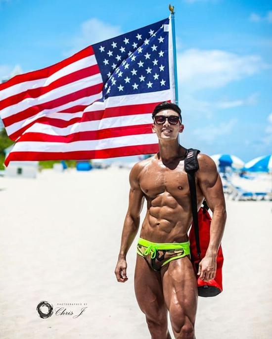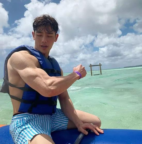 身体先天条件本身就不错,肩宽腿长,再加上一身肌肉,荷尔蒙简直撩人。