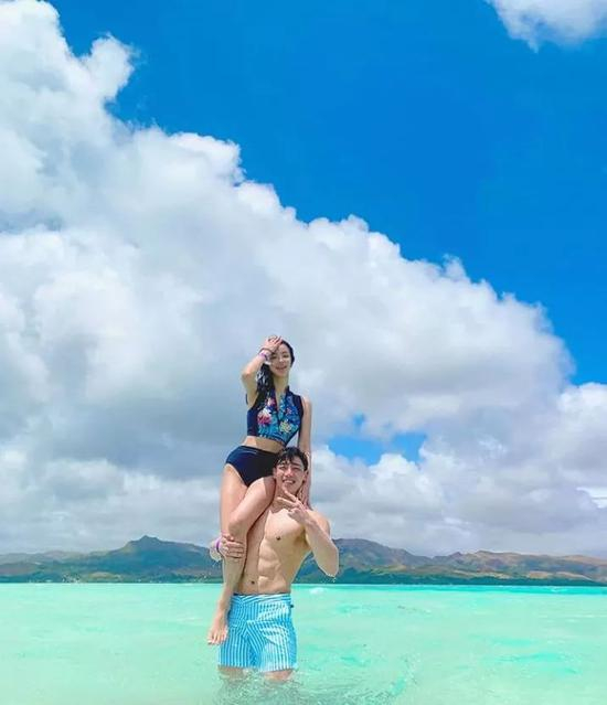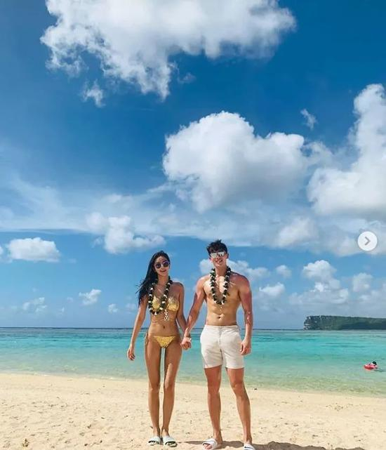 他经常会在ins上秀出两人的照片,阳光沙滩海景,型男靓女也是十分养眼了。