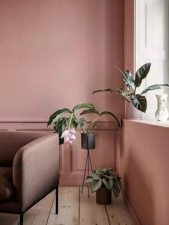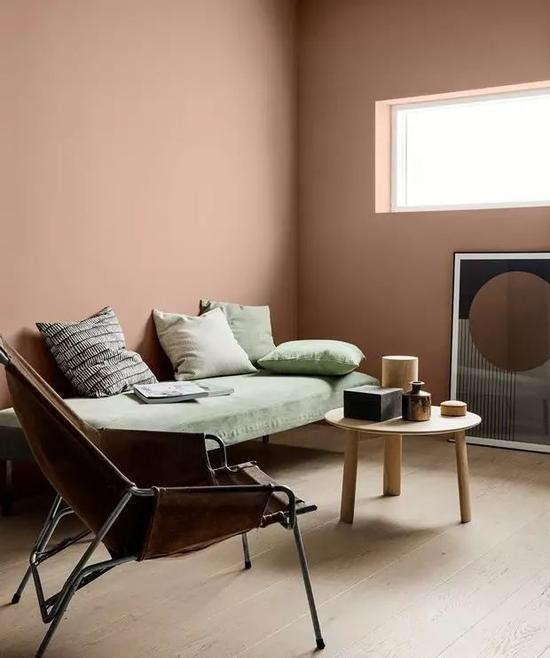 有点像混入了一大把泥土的粉色,是一种很微妙的中性色,介于温柔的粉红色与朴实的大地色之间。遗传了大地色系原始和质朴的基因,拥有稳重踏实的性格,能够让人消除心理的戒备,产生信赖感,同时又因为接近于皮肤的颜色,墙面像是被注入了一丝生命的温度,比纯大地色更亲近温暖。