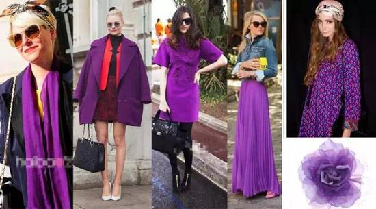 紫色是由红色和蓝色调和而成的,它处于冷暖之间游离不定的状态,加上它的低明度的性质,搭配不好就显得有些消极。