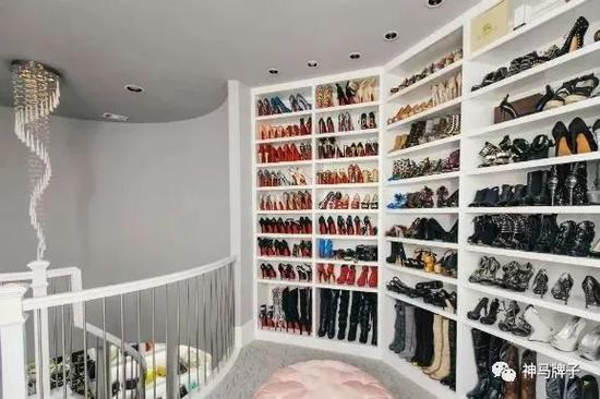 J姐还会专门辟出一个房间摆放他的鞋子,高跟鞋和运动鞋比例差不多的样子,乍一看也是色彩缤纷,感觉集齐了一个色卡。