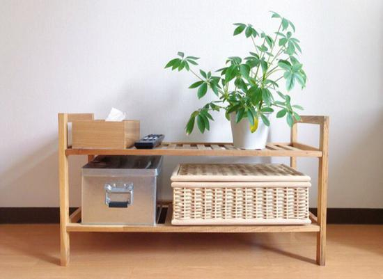 如果条件允许的话,在家一角还可以放置个置物架,用来放消毒清洁用品,同时还能再存放些小物件,顺便装饰下,也是整洁清爽。