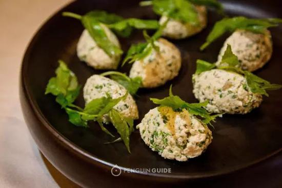 这道菜在典型的淮扬菜狮子头里,加入了刺少、肉质丰满的鮰鱼,再揉入少许的嫩藕,反复揉打后,再用高汤吊底,经过长时间的熬煮滋味鲜爽到恨不得把汤盅端起来喝光。