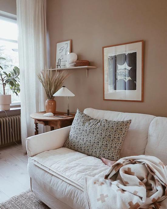设计师艾玛的家,简单又温柔,大地色系的家具配上低饱和度的粉,入眼舒适有气质,仿佛把全世界的暖意都裹藏在自己的家里。