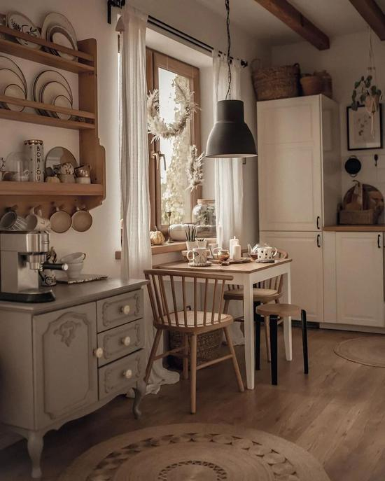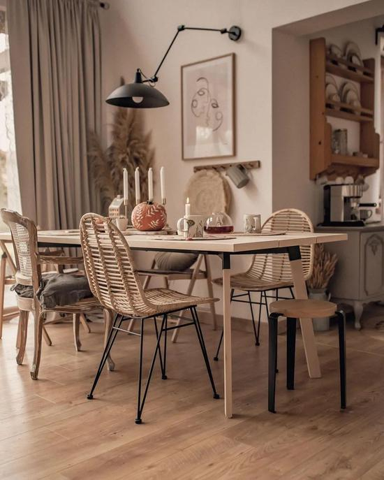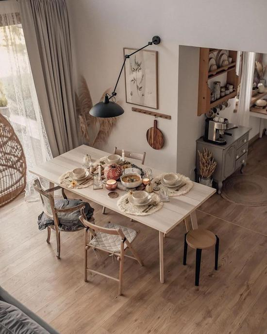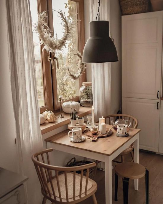 家居博主Mazale的家仿佛是一本秋季的童话故事书,原木家具和暖白的温柔色调,搭配一些实用的小装饰,让这个家看起来温柔又充满质感。