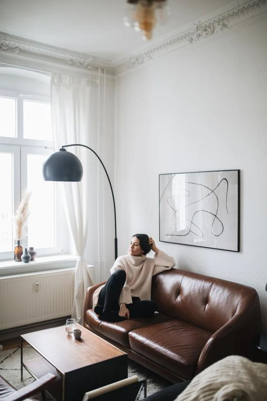 非黑即白+时髦的复古珠宝是时尚博主Anais Eleni一贯的穿搭风格,而这样的风格也体现在她位于柏林的家。黑白色软装配饰虽不夺目,但透着一股“高级感”,与复古家具搭配,也能变得时髦不冷淡。