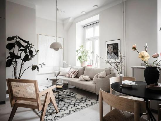 面积仅28m²的小公寓如何高效利用?瑞典设计师巧用转角柜隔出独立睡眠区,让“客厅放床”这件事变得更自然。整个空间以柔和的米色为主调,自然清新的木质家具也为小公寓增添了一份温暖。