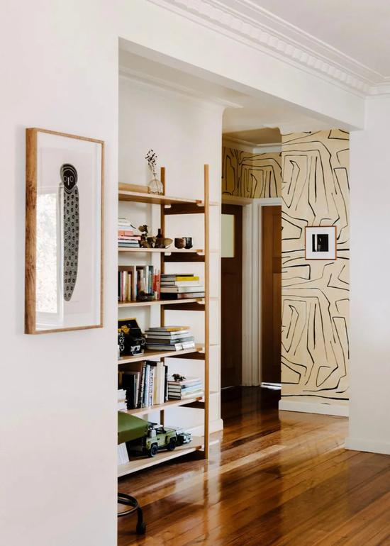 Lucy 觉得 Kelly Wearstler 采用丝网印刷的设计,拥有着五六十年代非常复古的氛围感,但同时又比较轻松。比起大幅的抽象画,当客人走进家门的时候不会有太大的压力感。