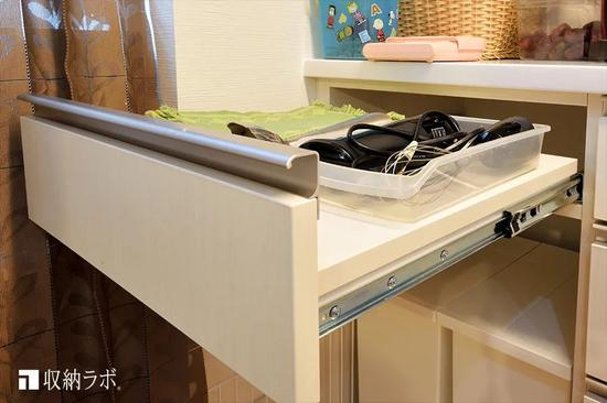 为了不浪费空间,有的还会在垃圾桶上方增加一个可储物的抽拉面板。