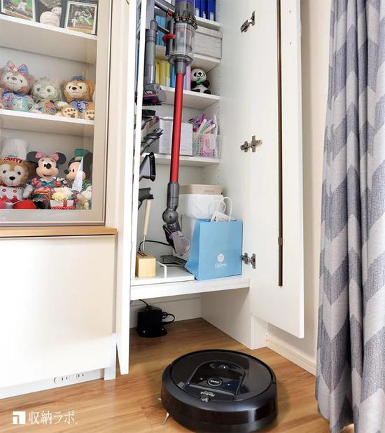 柜体下方还专门为扫地机器人预留了充电位,让它每天工作完成后也能自己“回家”。