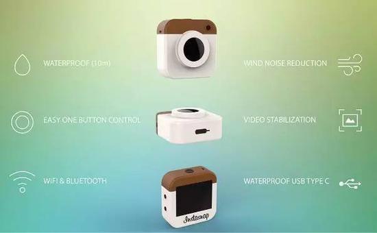 设计师以instagram为设计灵感设计了这款便携式概念相机Instasnap。机身只有三个按键:顶部的按钮既是开关又是快门,一侧的两个按钮则是用来在选项界面进行设置的。