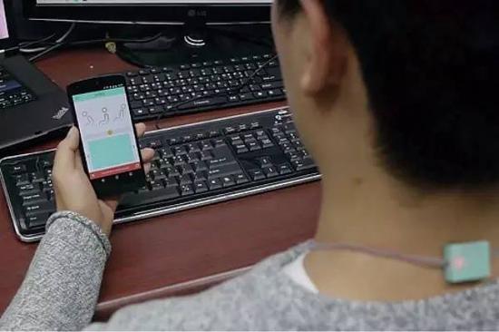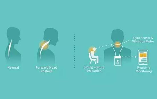 这款智能卡套能提醒上班族注意坐姿,实时进行调整。外观是一个大家经常用的卡套,绳带上有坐姿感应器。紧贴在颈椎部位,可以感应到颈椎是否过度前倾等。