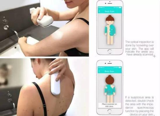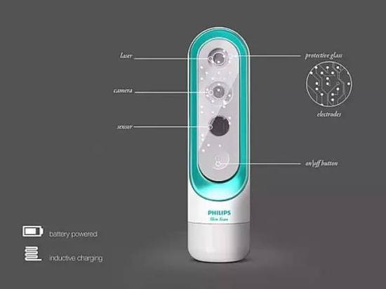 Philips Skinscan是一款癌症检测仪,能诊断出世界上发病率最高的癌症类型,黑色素瘤和皮肤癌。使用时你只需要握着它在皮肤表面划过,它就能检测你的表皮。如果设备检测到可疑迹象,它就会自动切换到深度检测模式,进行一个更加全面的检测。
