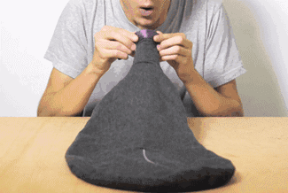 这款枕头内部并不是传统的棉花等填充材料,而是需要吹气才能使用。弧形设计和内部的酒窝形状,确保使用时的舒适感。不用的时候就折起来,差不多是一部iPhone7的大小,十分方便。
