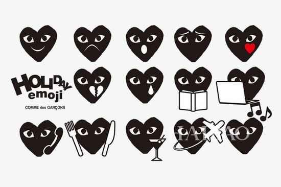 川保久玲 (Rei Kawakubo)去年也推出了 Play 系列 Emoji,可爱逗趣程度直逼年度最高啊!图案都是由波兰艺术家 Filip Pagowski 创作,不过只供 iOS 系统下载及只限使用于 iMessage,不同的是,Play 系列 Emoji是需要收费,不过也不贵,只需几块钱就可以拥有这 24 个表情丰富的黑心心,还是很划算的!